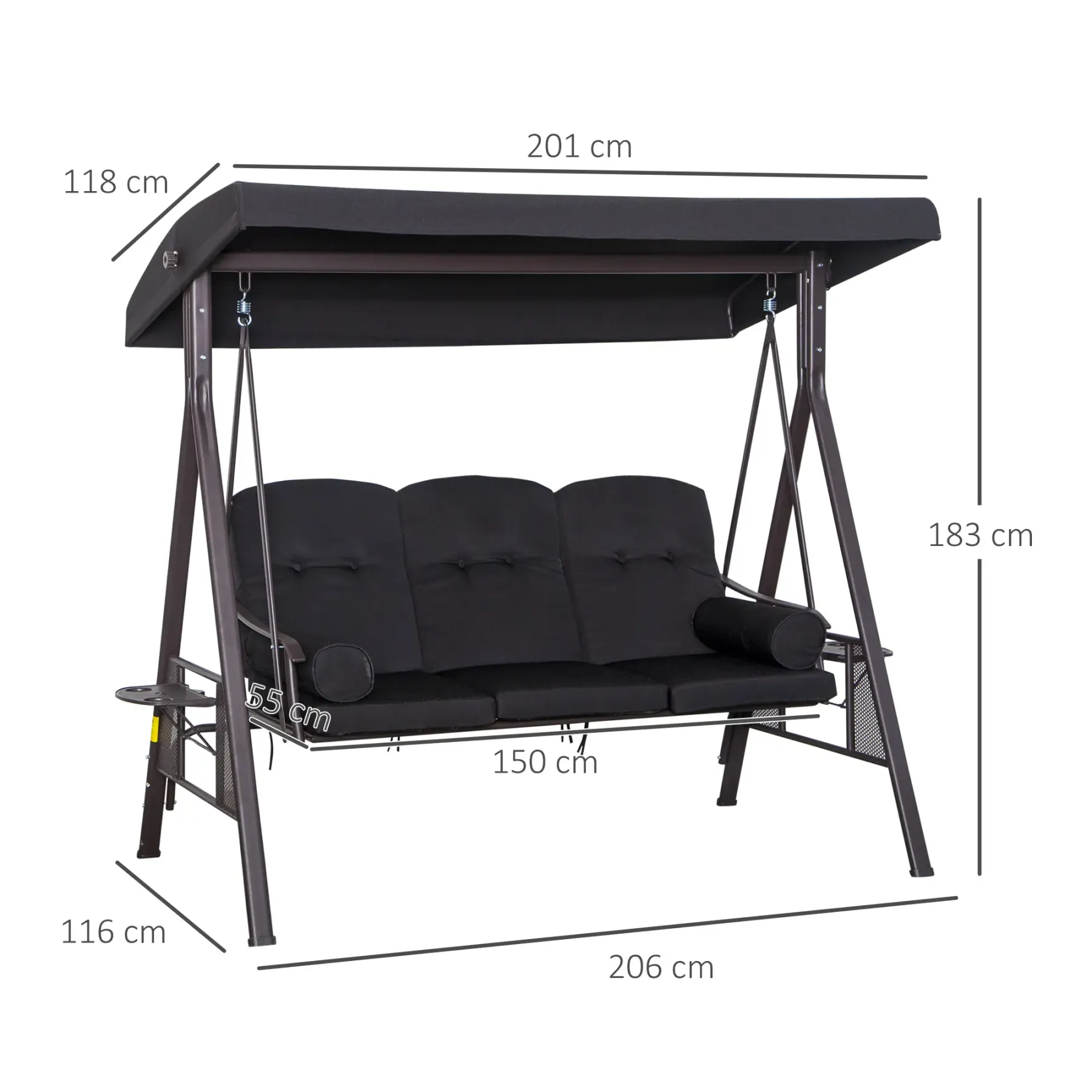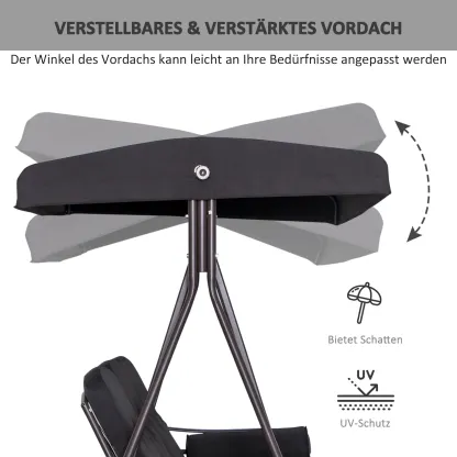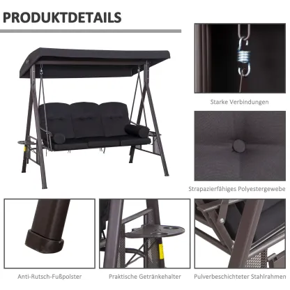 Auf der Terrasse frühstücken, die Sonne genießen, mit Freunden und Familie an der frischen Luft sitzen: Mit unserer Gartenschaukel für Erwachsene von Outsunny sitzen Sie bequem in jeder Situation. Bis zu drei Personen finden hier Platz, umrahmt von einem eleganten und zugleich robust designten Metallrahmen. Für besonderen Sitzkomfort sorgt die 8 cm dicke Polsterung und eine kompakte Ablage, auf der Snacks, kühle Getränke und ein gutes Buch sicher Platz finden.