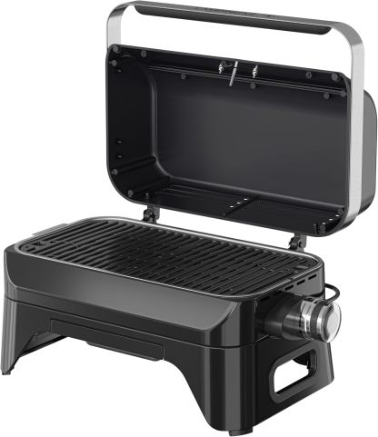 KOMPAKT MIT STARKER LEISTUNG: Der leistungsstarke 2 kW Edelstahl-Brenner sorgt für gleichmäßige Wärme auf der gesamten Grillfläche des Grills; kompakter tragbarer Grill