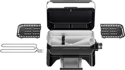 KOMPAKTER GRILL: Maße (LxBxH) 40x59x36 cm, Gewicht 14 kg; 2.200 W Leistung, stufenlose Temperaturregelung, ausreichend langes Kabel mit Euro-Stecker