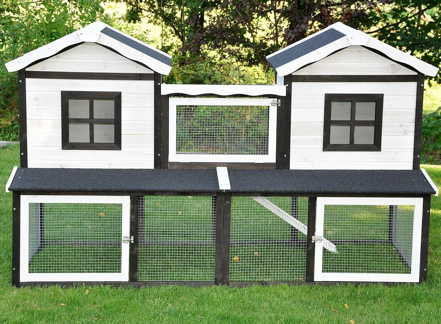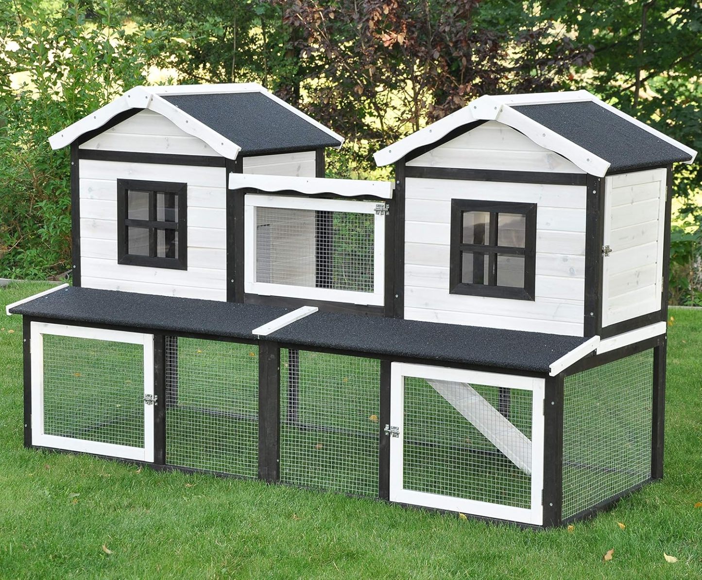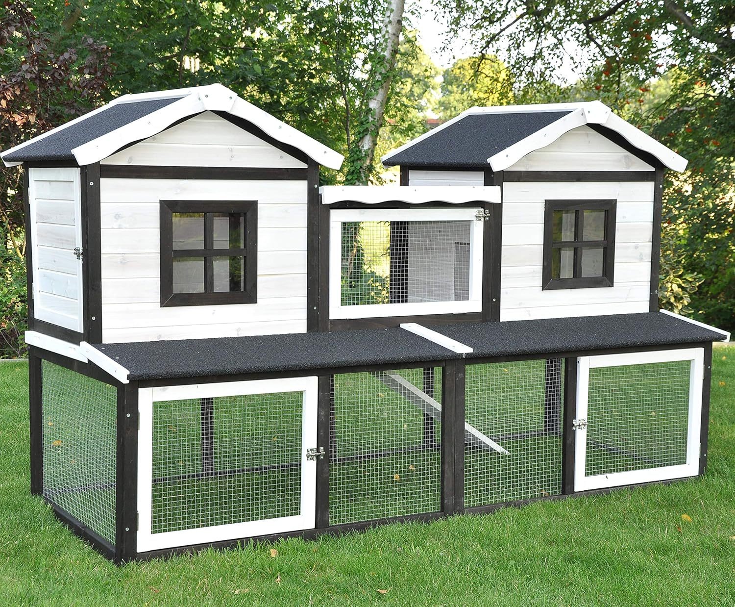 nanook Premium Hasenstall Kleintierstall Kaninchenstall XXL groß artgerecht mit Freilauf Gehege ideal für draußen 197 x 85 x 112 cm - braun weiß - 2 Ebenen