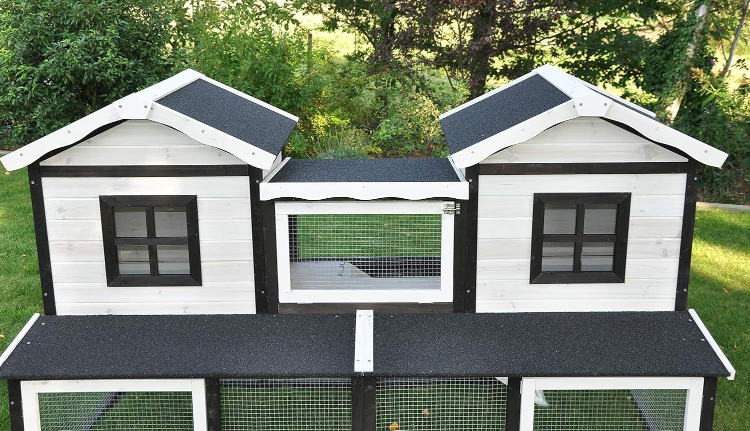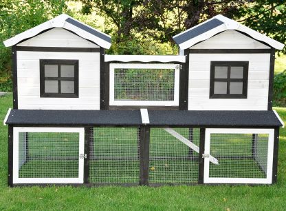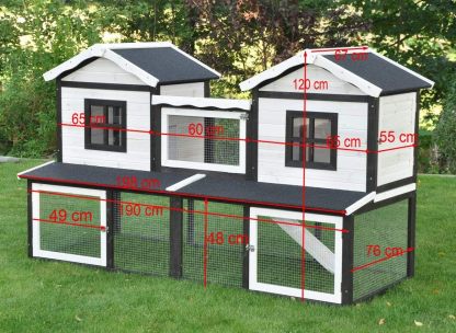 MEHR PLATZ - artgerechte Kombination aus Hasenstall und Freilauf für drraußen - Gesamtmaß inkl. Dach: 198 x 85 x 120 cm - mit viel Platz auf 2 Ebenen - Geeignet für mehrere Kaninchen