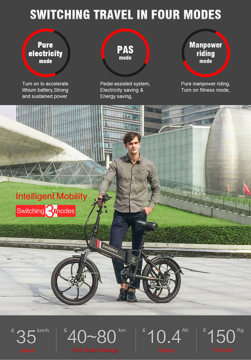 SAMEBIKE 20LVXD30 - Faltbares E-Bike, 350W, 20 Zoll, 48V10.4Ah Batterie