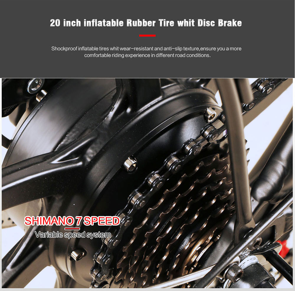 Entdecken Sie das SAMEBIKE 20LVXD30, ein faltbares elektrisches Fahrrad, das Komfort, Leistung und Mobilitt vereint. Ausgestattet mit einem leistungsstarken 350W bürstenlosen Getriebemotor und einer herausnehmbaren 48V10.4Ah Lithiumbatterie, erreicht dieses E-Bike eine Hchstgeschwindigkeit von 35 km/h und bietet eine Reichweite von bis zu 80 km. Der robuste 20-Zoll-Aluminiumrahmen und die Federgabel sorgen für ein reibungsloses Fahrerlebnis, whrend die Shimano 7-Gang-Schaltung und mechanische Scheibenbremsen für przise Kontrolle und Sicherheit sorgen. Perfekt für den tglichen Pendelverkehr oder abenteuerliche Ausflüge, bietet das SAMEBIKE 20LVXD30 auch zustzliche Funktionen wie einen USB-Ladeanschluss für Ihr Handy und einen Einbruchalarm. Jetzt kaufen und die Freiheit der elektrischen Mobilitt erleben!