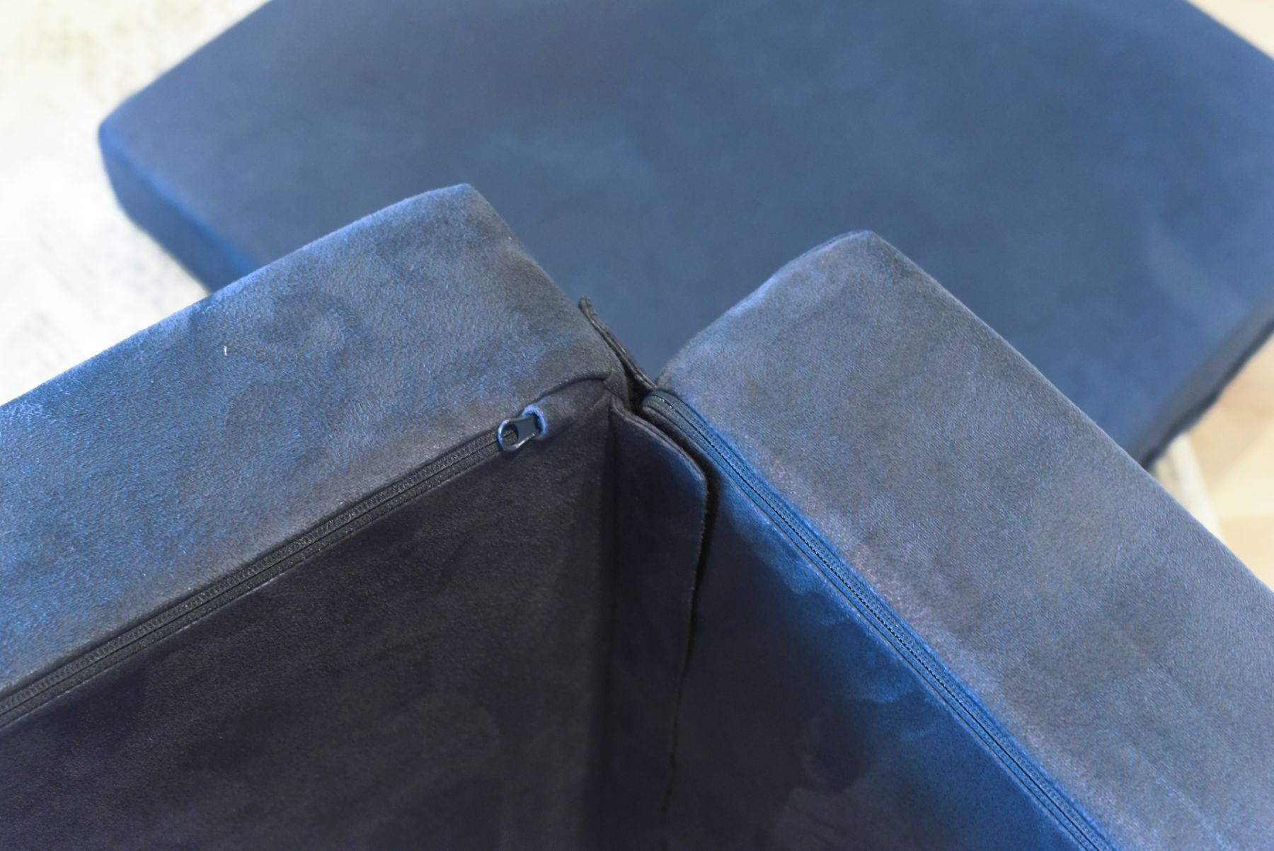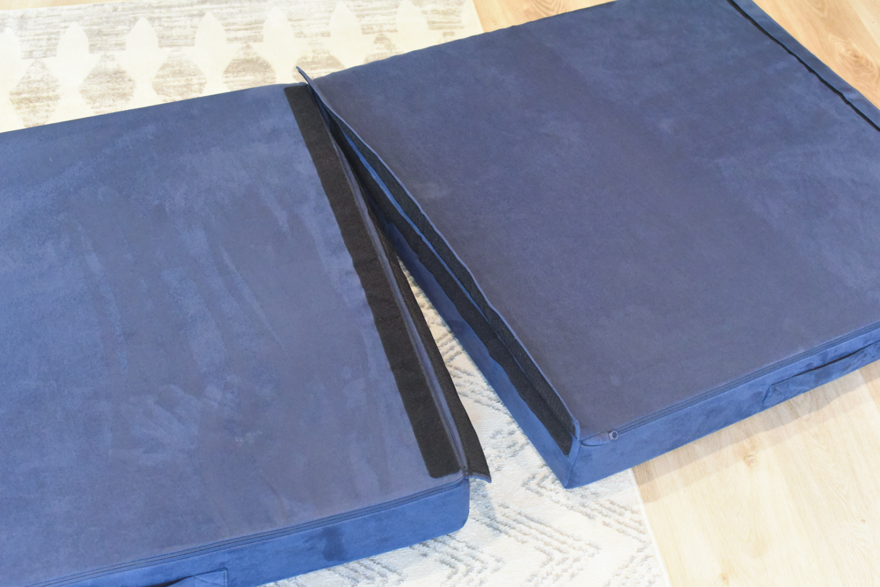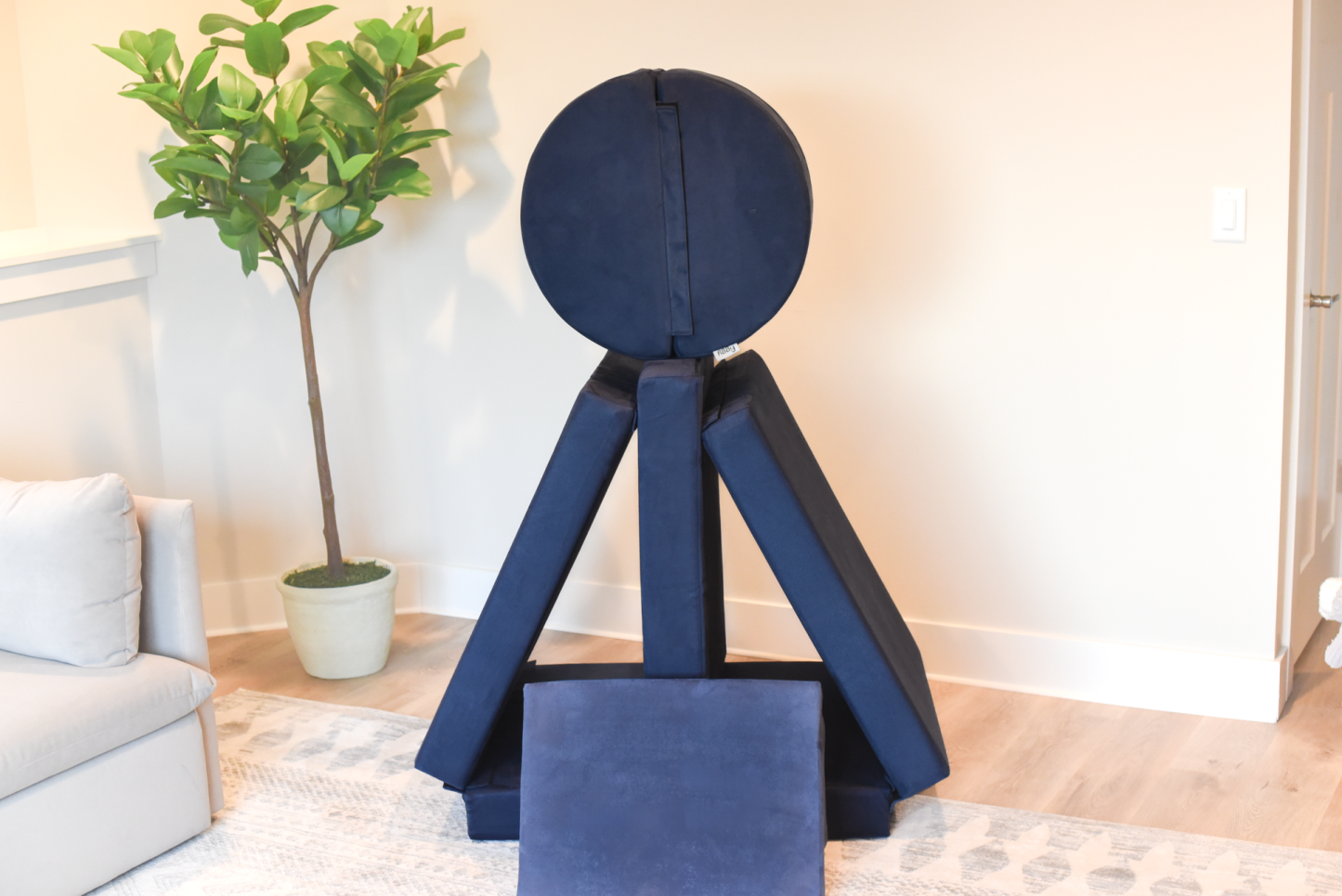 A raft on the high seas. A treehouse high in the sky. A rocketship to the moon. This play couch is anything and everything an imagination can create. The Figgy comes with velcro connectors to connect individual base cushions together into ball pits, forts or even tumbling mats! The Figgy with Half Moon cushions showcases the half moon pillows which can be used individually or connected to create wheels, ottomans or other unique shapes. The Figgy play couch with half moons includes 4 base cushions, 2 half moons, and a wedge. Add optional waterproof liners to prevent against accidents.